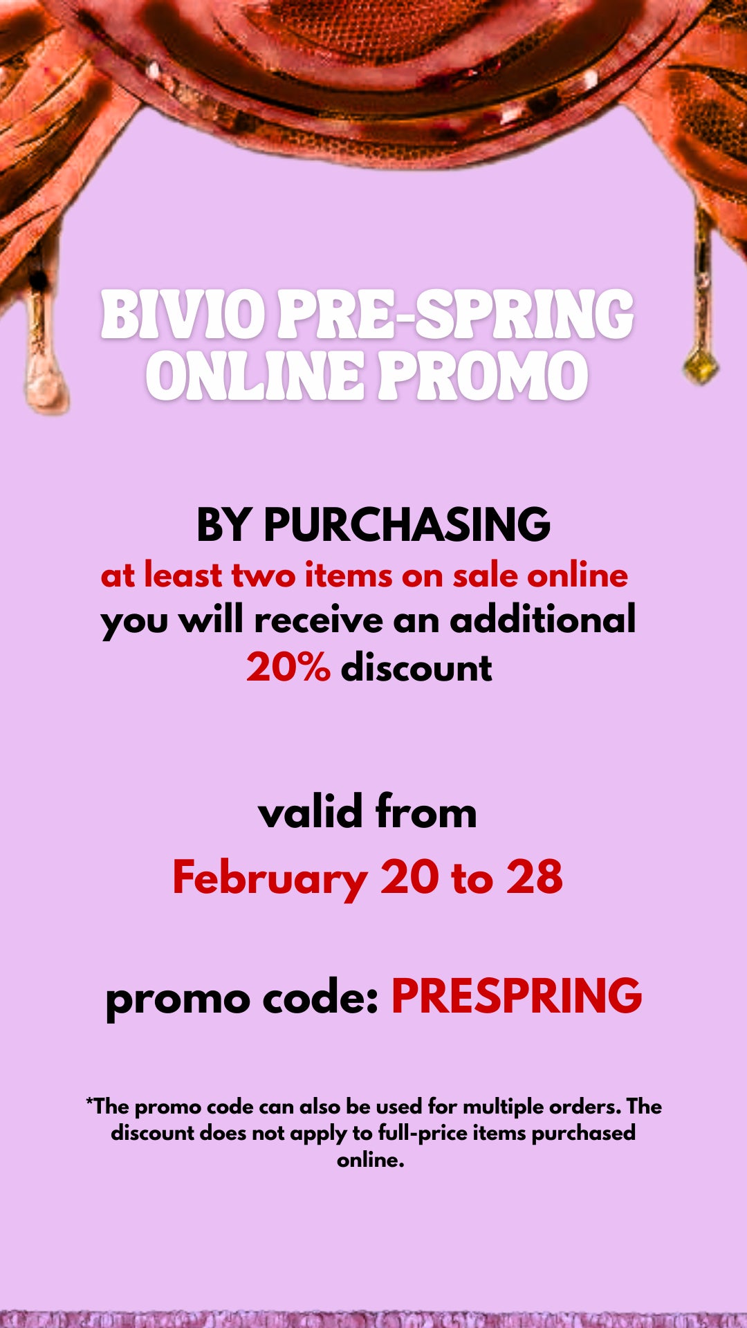 • BIVIO Milano non risponde in alcun modo per danneggiamento, furto o smarrimento dei beni prima del ricevimento e in ogni caso, se spediti senza avvenuta autorizzazione a procedere.